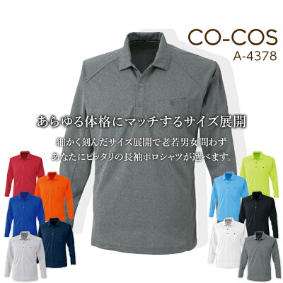 【P10倍!要エントリー】コーコス 長袖ポロシャツ A-4378 CO-COS メンズ レディース 長袖 消臭テープ 吸汗速乾 抗菌 防臭 4L-5L 作業服 作業着 【春夏】 スポーツ